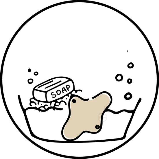 Deja en remojo en agua jabonosa durante al menos 8 horas antes de lavar a mano.